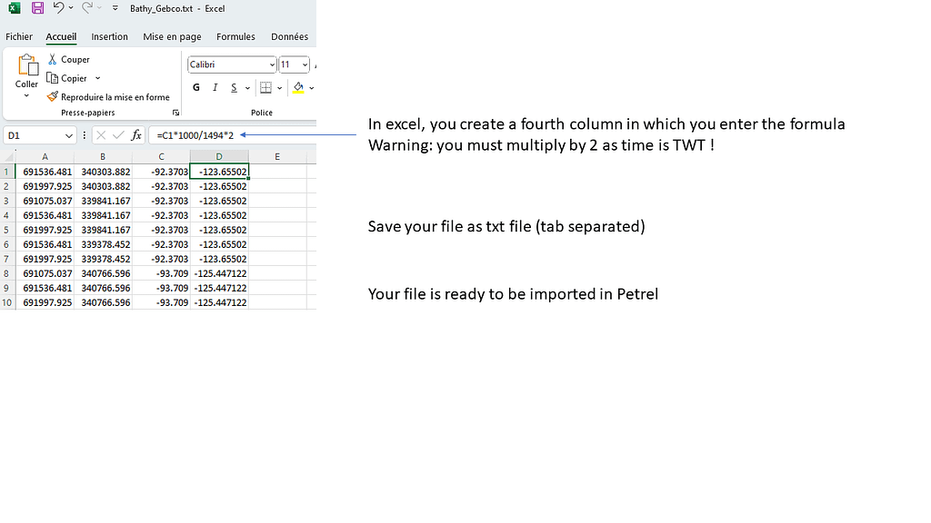 2) Convert this file using the velocity in water, so the bathymetry is now in seconds