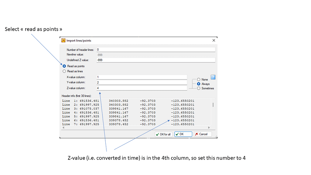 In seismic interpretation we usually interpret in time. So, it means that all data must be converted in time domain prior to any import process. It is very difficult to convert data in time once they have been imported in depth… So, please think different, think in time !