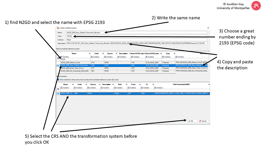 1) Create your own CRS – Close and reopen Petrel to update the list – Define the new CRS