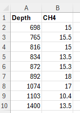 This can be done in Excel. Be sure that values of depth are sorted. Then you must save as a txt file (ASCII) with tab separators. Your file should be like File.txt