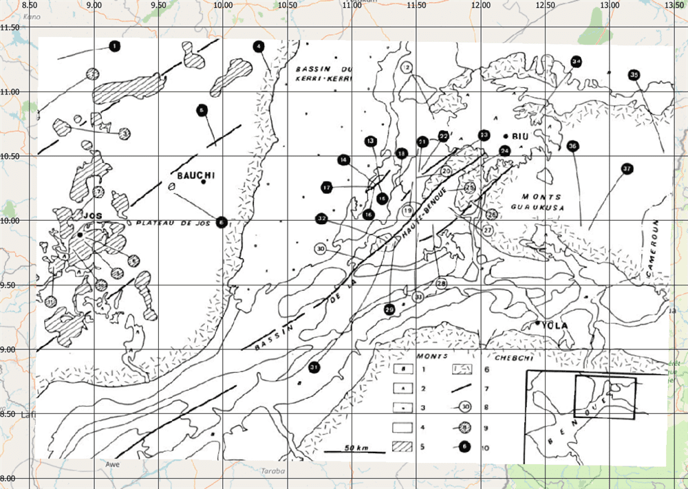 Now, we will do the same with a structural map. However, we don’t have coordinate reticules. On the map, cities are reported as black circles.