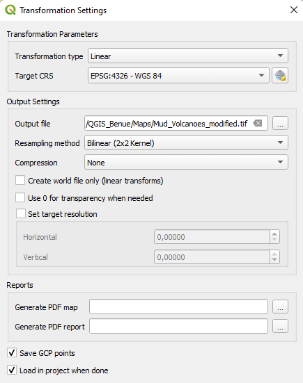 You repeat the operation for all known points with coordinates and then, in the georeference window you click on the green triangle: