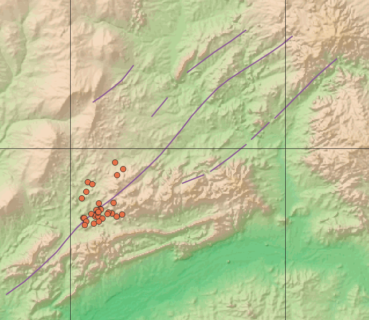 Now you can untick the yellow pencil and select the map you want to display with both the points (Mud-volcanoes in this example) and the faults: