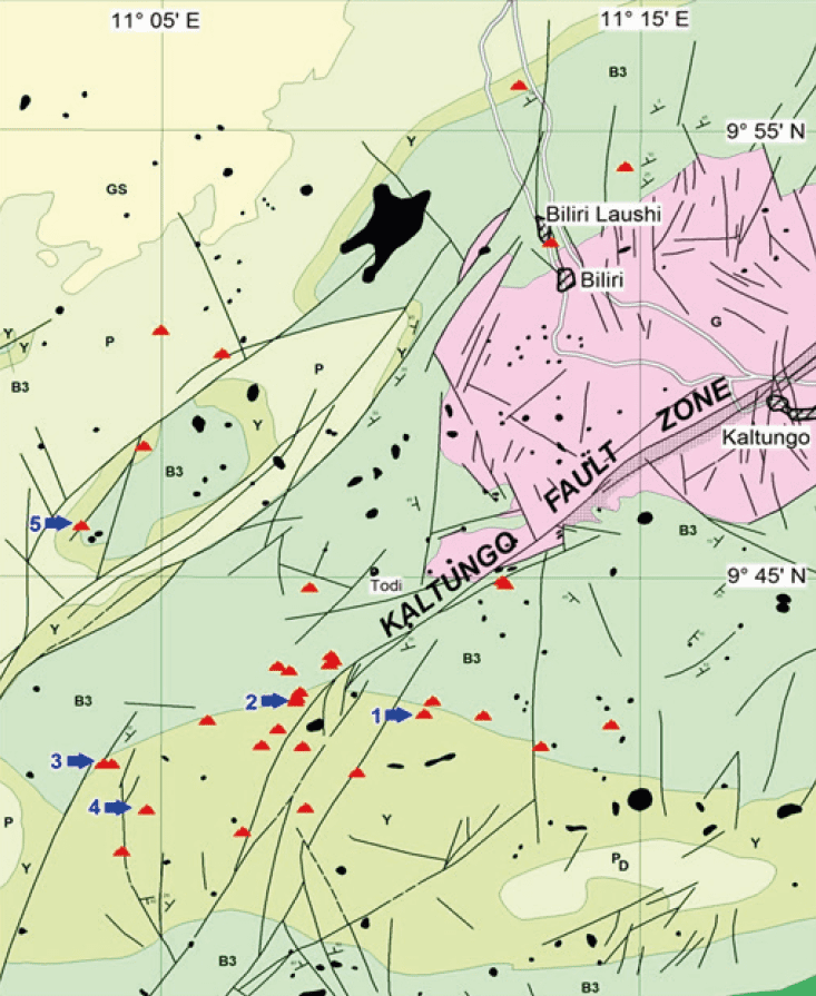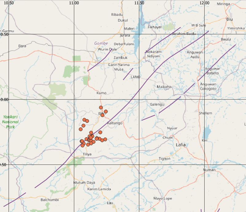 Now we will digitize faults. This is the same procedure as shapefile with points but select lines instead.