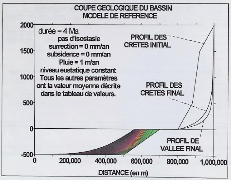 A new numerical model (STRATOS – developed by F. Lucazeau at the University of Montpellier) was used to test a set of parameters such as topography, rainfall, the diffusivity of sediments along slopes etc… It appeared that the increase in erosion is not controlled by a single parameter. The fast alternation (i.e. 100 ka) between glacial and interglacial periods is responsible for a constant disequilibrium of the base level.