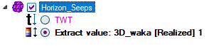 You are ready. In the top menu « seismic interpretation », click on « surface attributes ». In the window that opens, select « extract value ». Select the seismic block in the left pane and click on the blue arrow to send it in the input seismic. Click add to surface and select the surface in the left pane and click on the blue arrow to send it there. Do the same for the reference horizon below.