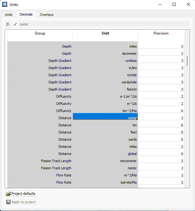 Then, in the decimals menu, go to Distance in meters and change the value to 2. It means that now coordinates car be in meters such as 556677.88 as for UTM coordinates. You can do the same for Distance in km, but change the value to 6 decimals.