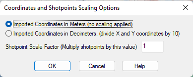 Depending on the data, a scaling could be applied here. If the data are in meters, just click OK