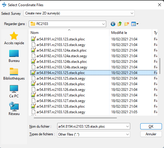 In the type of file, select « All Files » and click on the profile with the right extension i.e. segy or sgy or seg-y depending on your data. Click open
