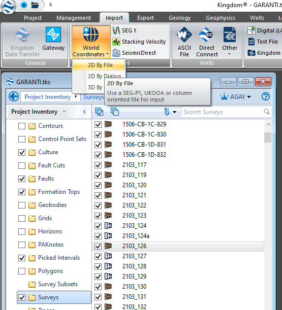 In kingdom, in the tree, right click anywhere in surveys or the import menu on top, click on « world coordinates » -> 2D by File