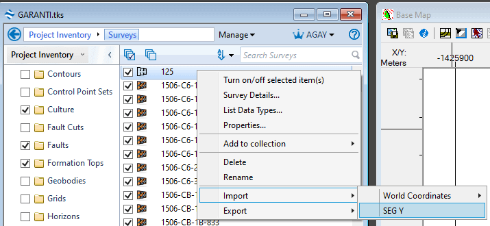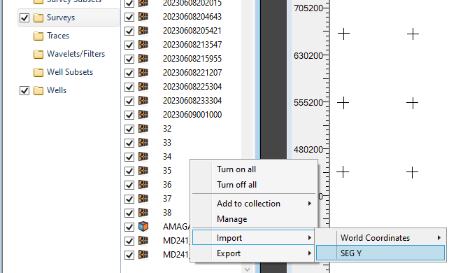 Then right click on the file name in the tree and select Import -> SEG-Y