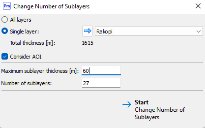 In the window that opens, select either the maximum thickness for each sublayer or the number of layers. In that case, I choose 27 layers as the layer is quite thick ! So it means that each layer will be 60m thick.